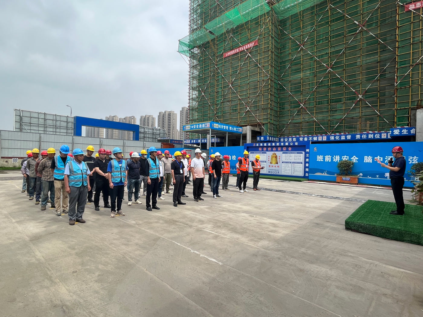 為深入貫徹黨的二十大精神和習(xí)近平總書(shū)記關(guān)于安全生產(chǎn)的重要論述,進(jìn)一步提升我公司安全施工意識(shí)和避險(xiǎn)逃生能力,近日,在全國(guó)第22個(gè)“安全生產(chǎn)月”到來(lái)之際,集團(tuán)公司舉辦了以“人人講安全 個(gè)個(gè)會(huì)應(yīng)急”為主題的“安全生產(chǎn)月”啟動(dòng)儀式。集團(tuán)公司常務(wù)副總王龍海、建設(shè)單位代表、監(jiān)理方代表、項(xiàng)目負(fù)責(zé)人及專職安全員等近50人參加了此次活動(dòng)。