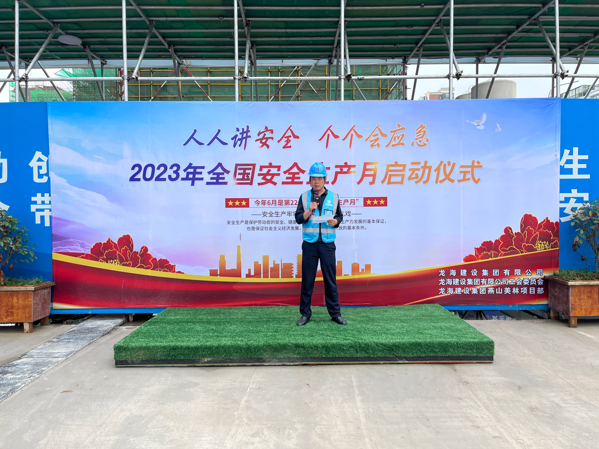 活動(dòng)在燕山美林項(xiàng)目現(xiàn)場(chǎng)舉行,常務(wù)副總王龍海啟動(dòng)安全生產(chǎn)月活動(dòng),并做了動(dòng)員講話。他表示,要以扎實(shí)有效的舉措,規(guī)范管理行為和作業(yè)行為,進(jìn)一步完善安全生產(chǎn)責(zé)任體系,全力保障項(xiàng)目安全生產(chǎn)向好向快發(fā)展。同時(shí)提出三點(diǎn)要求:一要堅(jiān)持人民至上、生命至上,進(jìn)一步增強(qiáng)安全意識(shí),保證安全生產(chǎn);二要精心組織“安全生產(chǎn)月”宣傳活動(dòng),切實(shí)把安全知識(shí)送到基層一線;三要嚴(yán)格執(zhí)行各項(xiàng)制度,完善各項(xiàng)措施,堅(jiān)決杜絕事故發(fā)生。