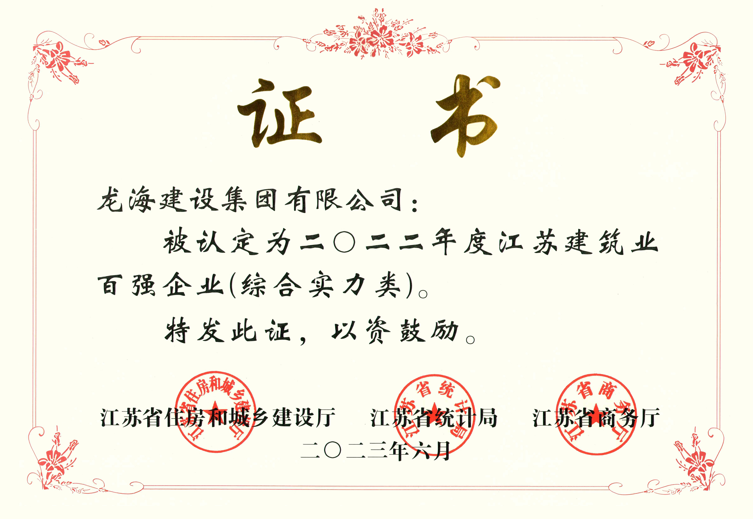 近日,省住房和城鄉(xiāng)建設(shè)廳發(fā)布了2022年度江蘇建筑業(yè)“百強企業(yè)”名單,公司再獲“綜合實力類”五十強企業(yè)榮譽稱號,公司已連續(xù)多年獲此殊榮,充分展現(xiàn)了集團綜合實力和品牌影響力。